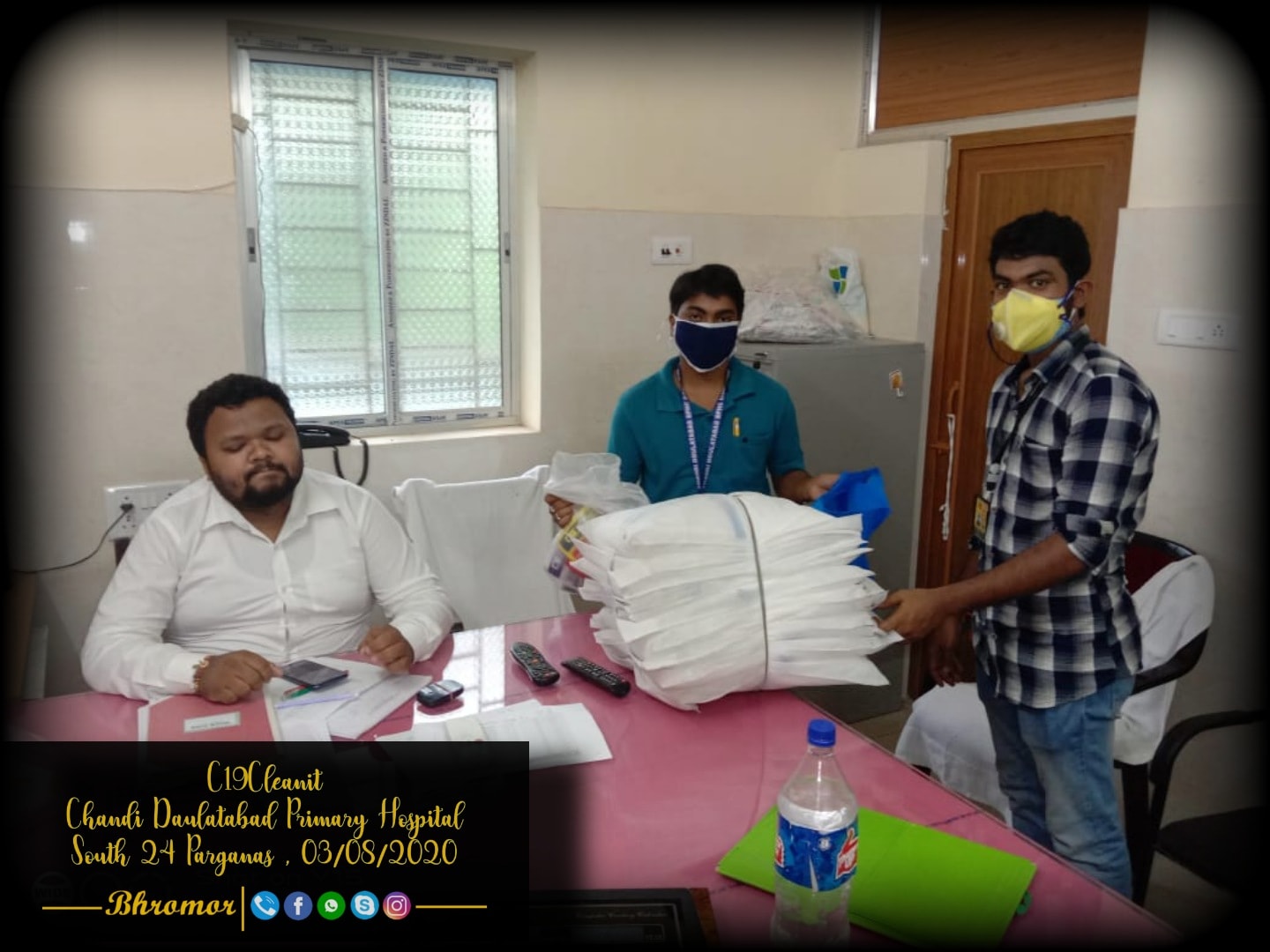 Distribution of PPE KIT, Face Shield, Sanitizer, Hand Gloves, N95 Mask, Surgical Mask. Their place in the front row to deal with Corona.Their job is to collect swab for corona testing.So more protection is needed.For that purpose PPE Kit, Face Field, Gloves, Sanitizer, N95 Mask and Surgical Mask were provided by Kolkata Bhromorians at Chandi Daulatabad Primary Hospital, South 24 Parganas. We wish them to stay safe. At the same time, on the occasion of Rakhi Purnima, they were dressed Rakhi on our behalf. We are very happy to give them so much joy in the midst of so much work.