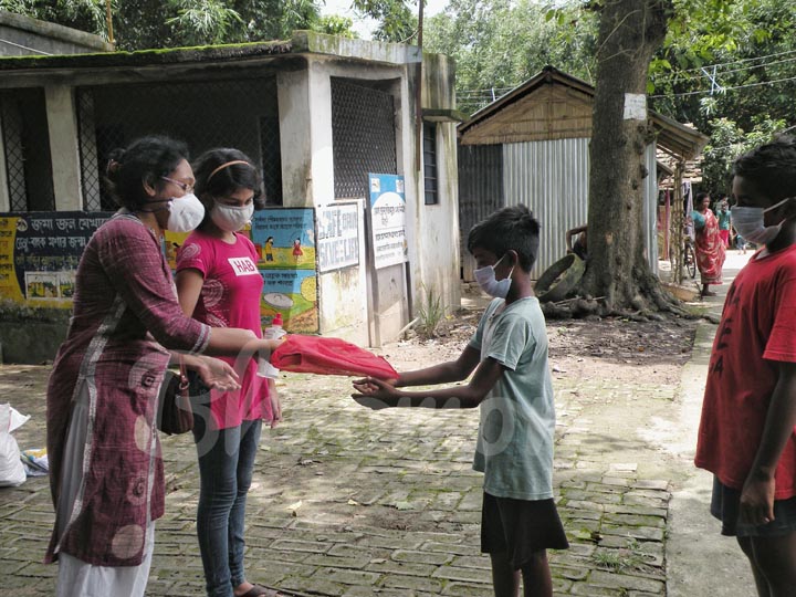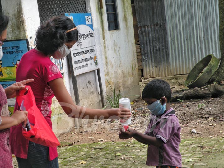 Fill the slate box to the brim. We love to float like butterflies among the colorful flowers, so we go around looking for flowers. Today, Ek Takar Pathsala is closed for several months. They have not been given educational materials for several months.Today it was completed courtesy of Suparna Di and Rana Da. And for the little ones there was chalk and slate. They will giggle.We show that picture after a few days.