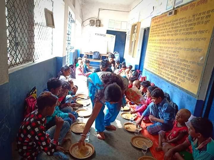 AYE RE VAI SOBAI AYE..... The Bhramar's Pathshala has started. Where they will learn with smile. Gradually the process of giving extra curricular activities will start. So today notebooks, drawing books, pencils, erasers, sharpeners and books were given (book bank).. It is accompanied by a joyous meal every week. It's name is Ullas Bhojan.. Today there was an arrangement of meat and rice as lunch was run in favor of Krishnanagar-1's former Joint BDO Mr. Tapas Kumar Gain.. When they saw some dessert item, they cried out with joy by saying that "please give us some more.. "This is the cause of our energy.. You can also come forward. Our school will run every Sunday along with Ullas Bhojan..