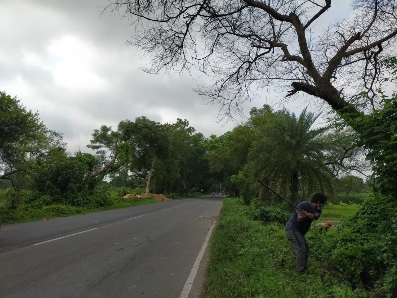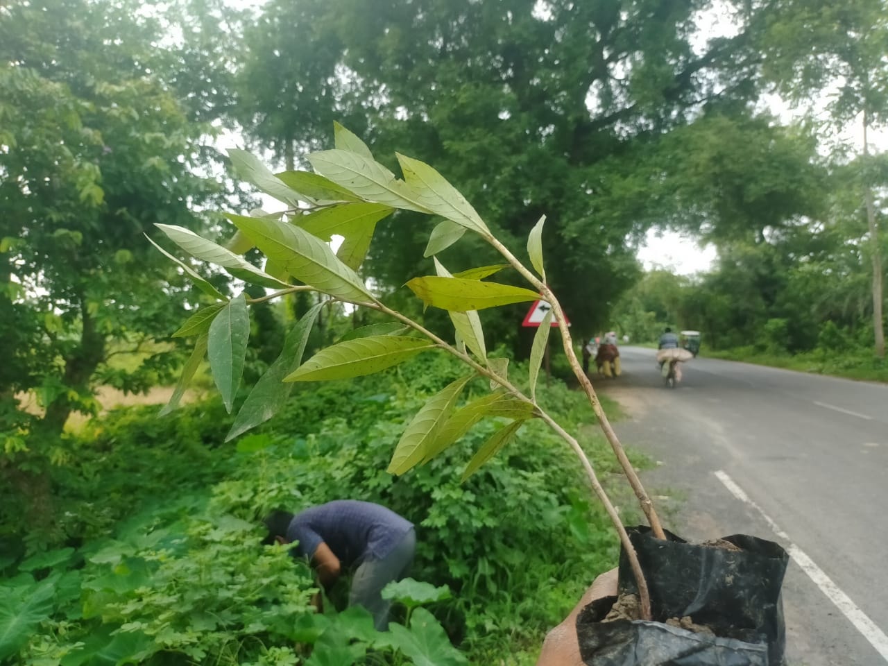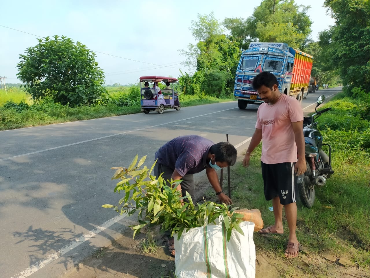Arjuna trees are being planted along the national highway from Khamarshimulia to Krishnanagar.