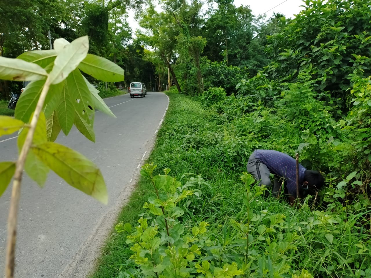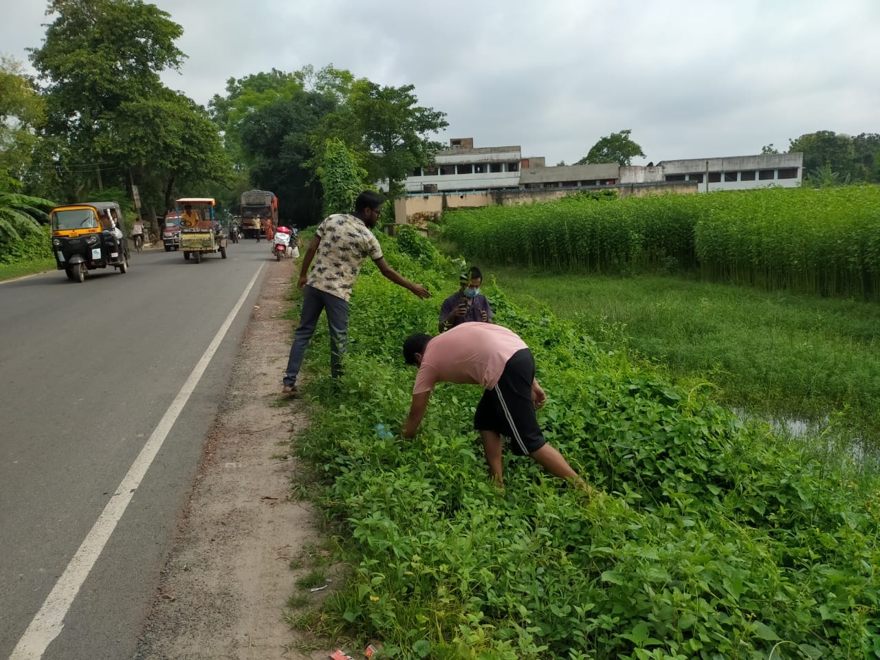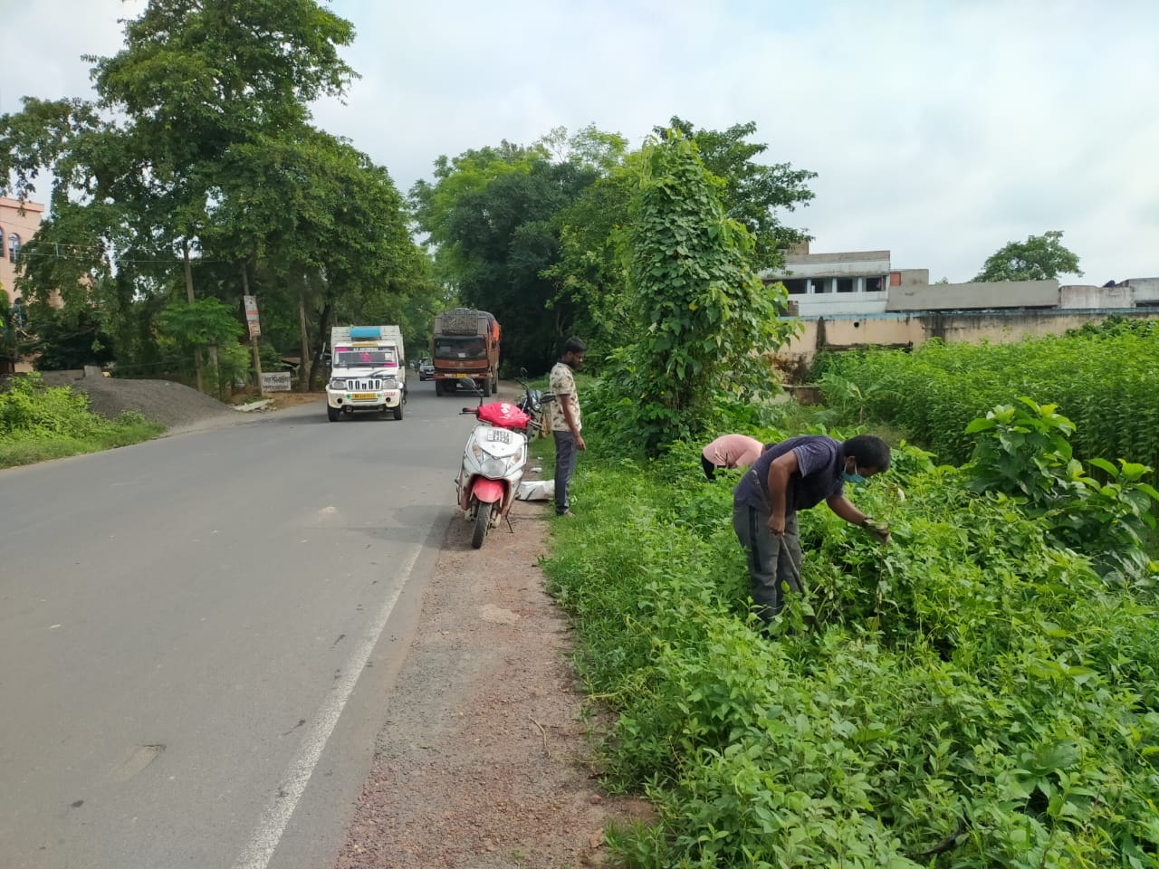 Arjuna trees are being planted along the national highway from Khamarshimulia to Krishnanagar.