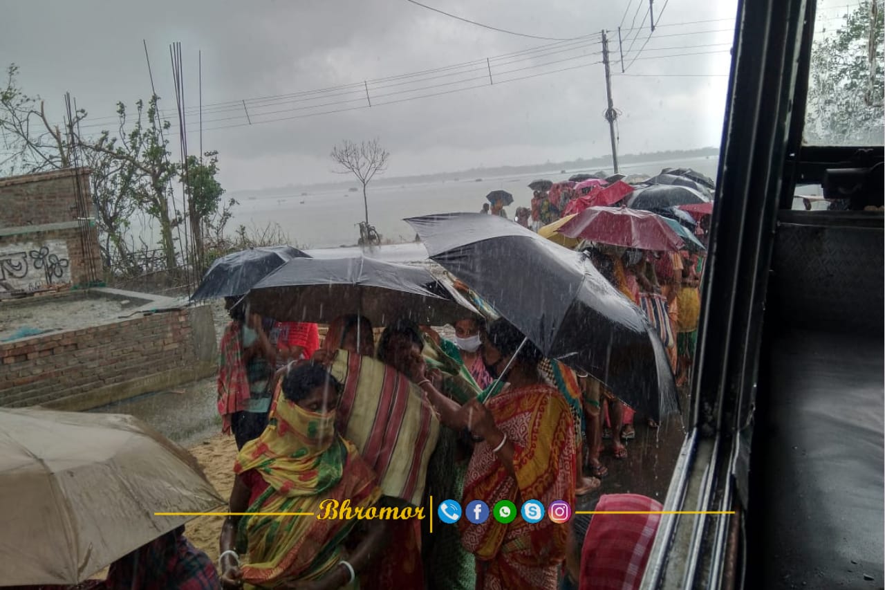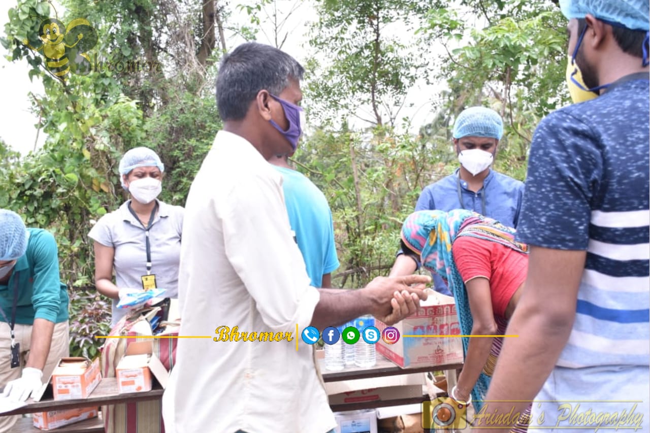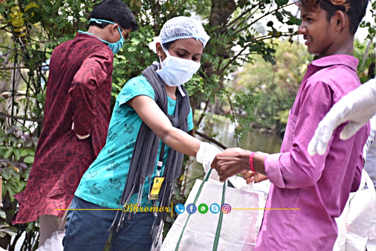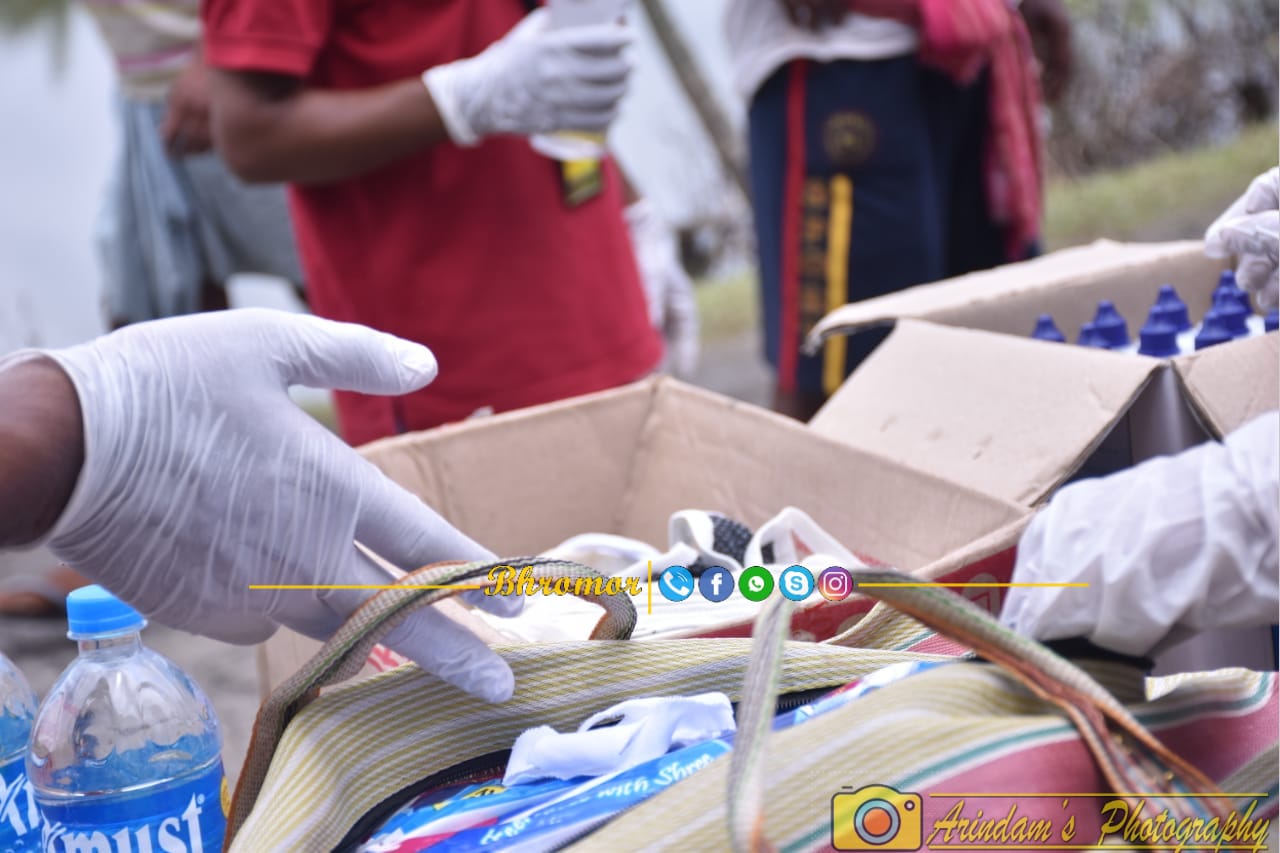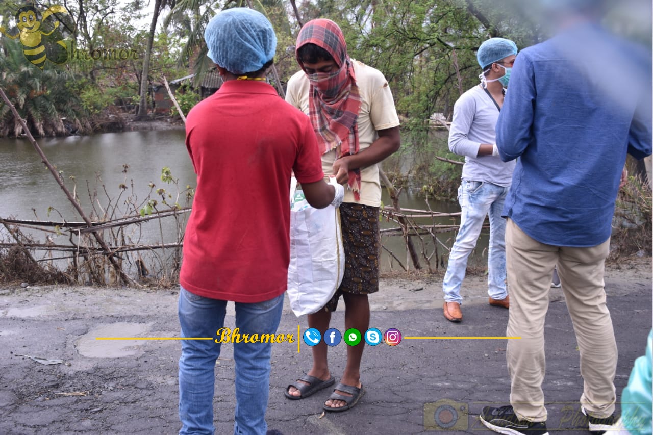 Cyclone Amphan, hit West Bengal on May 20 and affecting over 10 million people in the eastern Indian state. The powerful storm ripped through eastern India and neighbouring Bangladesh. The storm in West Bengal caused massive damage to standing crops, thousands of trees were uprooted, and power and water supply was interrupted in the state capital Kolkata. Many in the state have lost their entire homes as well. In that time many people were homeless and helpless. Many people thought that they can't stand up with his/her business or like something. In that time Amphan was like an imprecation. Man was despondent. So, in this time BHROMOR got another large project about this Amphan relief. It's about 250 families of sulkunideep, HASNABAD. The people were provided some foods,mask, medical kit, canvas by us with maintaining proper sanitization and social distance. We all enjoy together.