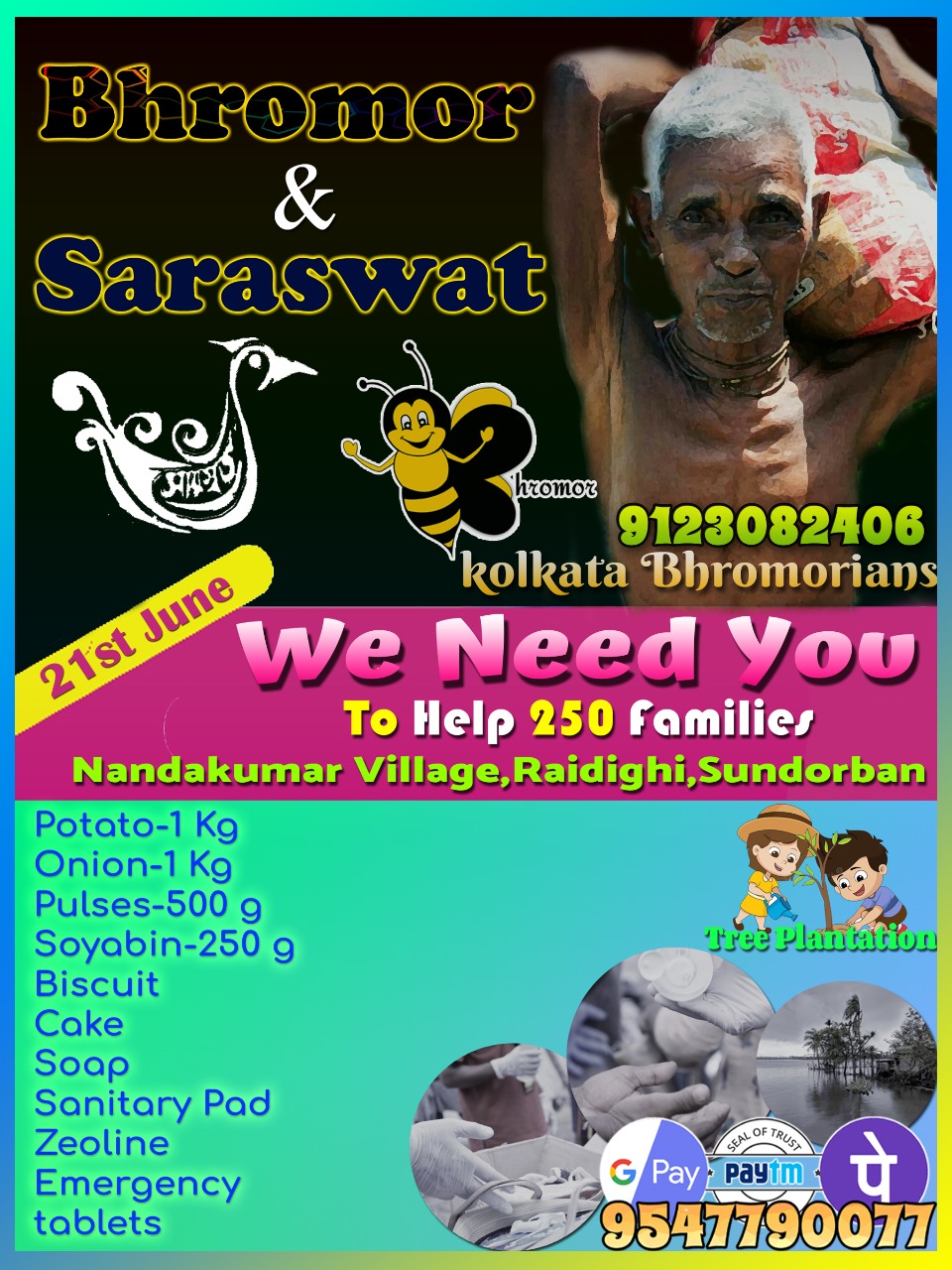 The horrifying cyclone Amphan has wreaked havoc all across West Bengal. Numerous people have been affected by it. A catastrophe of this scale has never been witnessed before. Thousands of trees were uprooted, and power and water supply was interrupted in the state capital Kolkata. Many in the state have lost their entire homes as well. For that reason our BHROMOR always ready for man. So, in this time BHROMOR got another large project about this Amphan relief. It's about 250 families of Nandakumar area, RAYDIGHI. We provided some foods, masks, medical kit etc to the people by maintaining the proper sanitization and social distance. We all enjoy together. We hope that every people's felicity are always with BHROMOR.