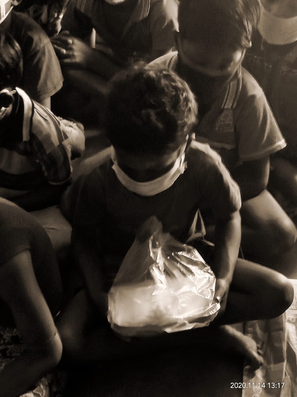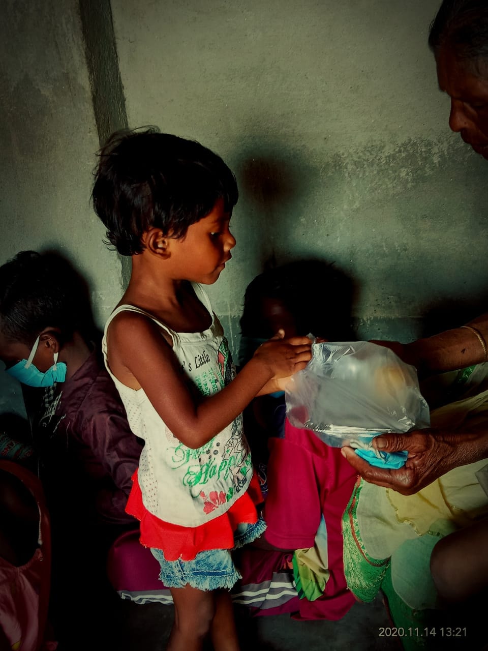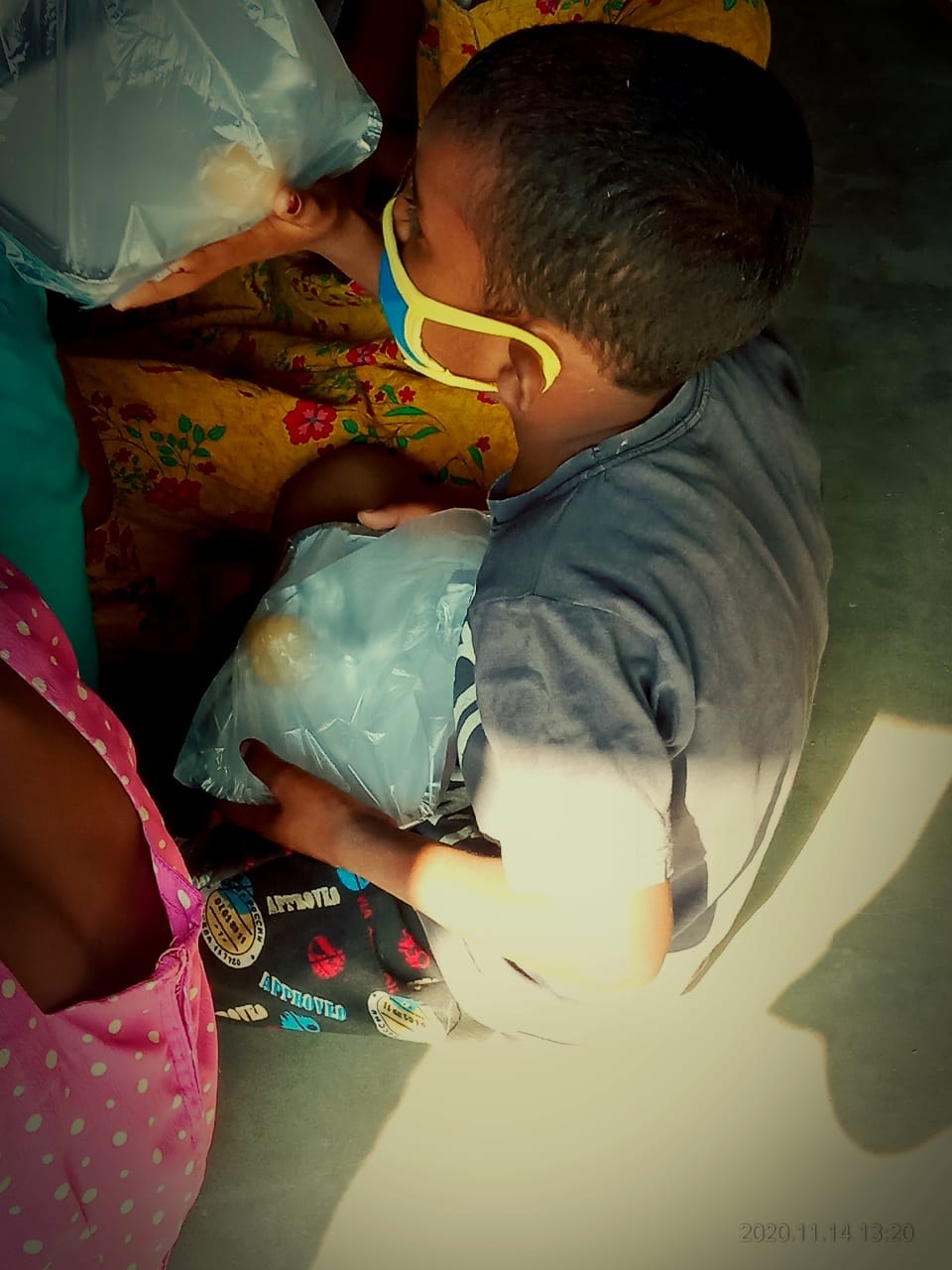 They are happy to get rice, pulses, chips and meat.