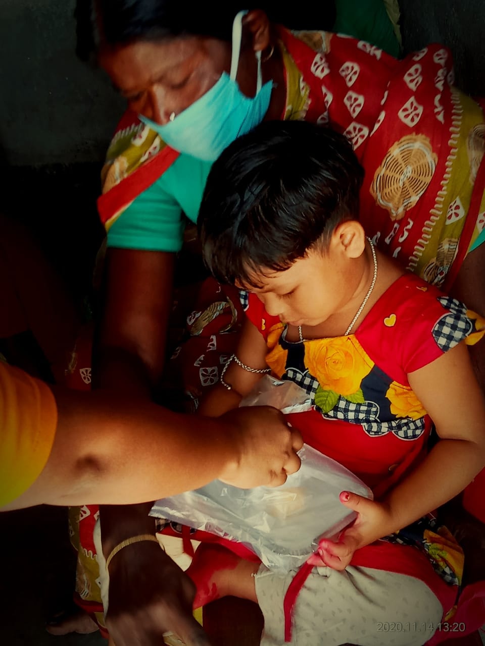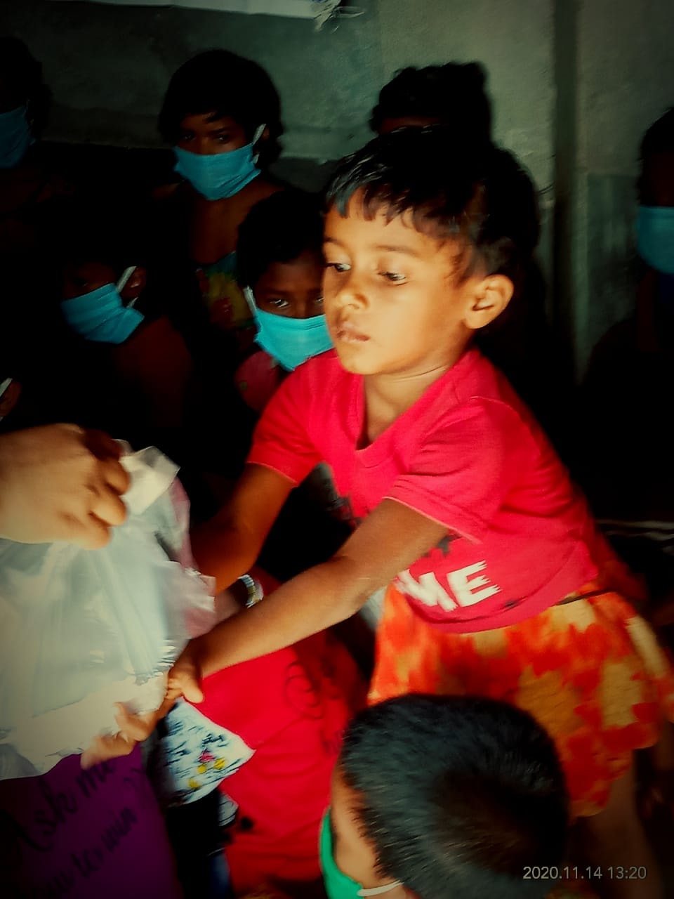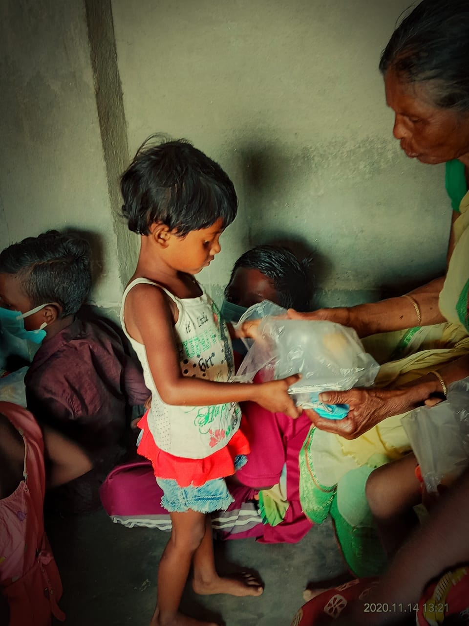 They are happy to get rice, pulses, chips and meat.