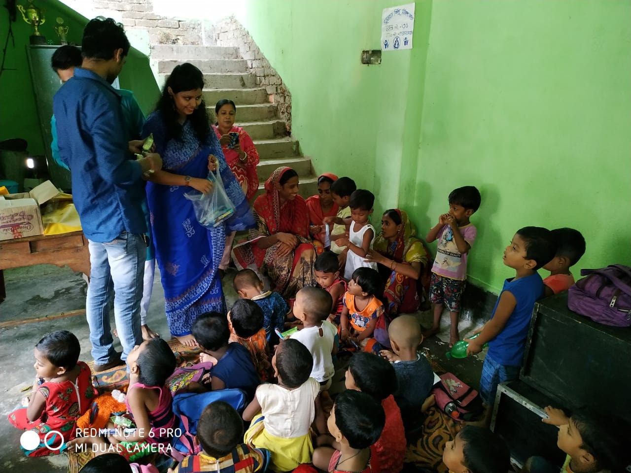 Educational materials were handed over to the childrens of Ghidah village under Birla Gate in Barrackpur. Cake and Cadbury for tiffin. The menu for the afternoon was rice and meat. We wish Subhankar and Rishita a lot of love and happy birthday. Many thanks to 'ekata sangha' for giving us the opportunity to stand by them in this way.