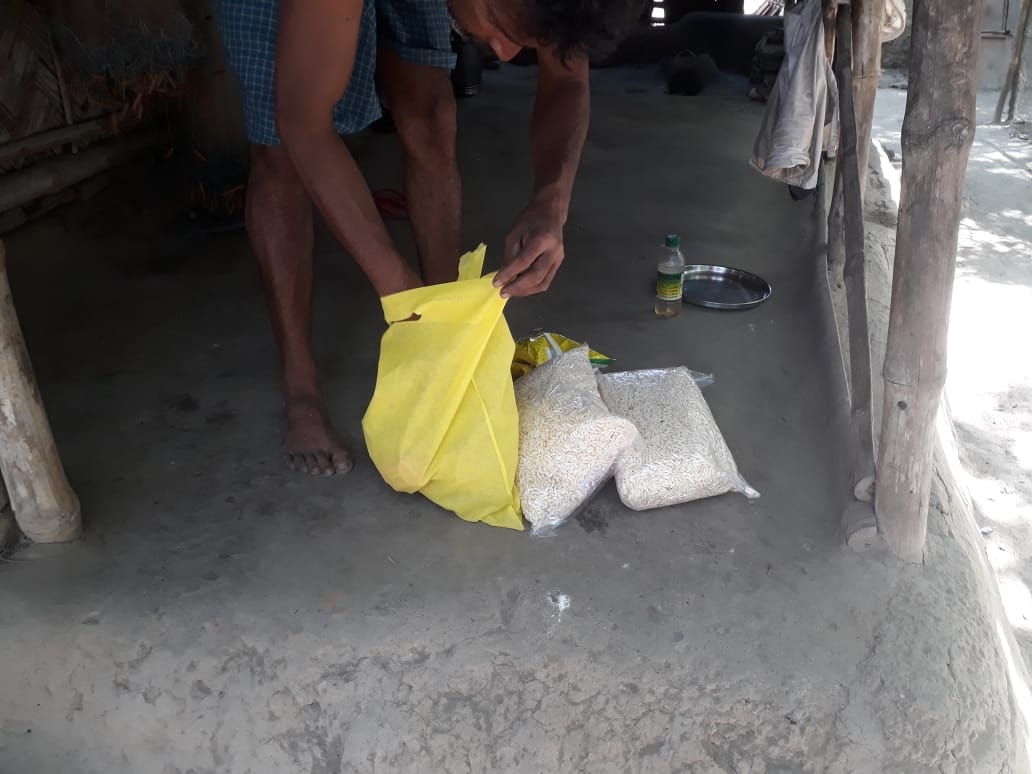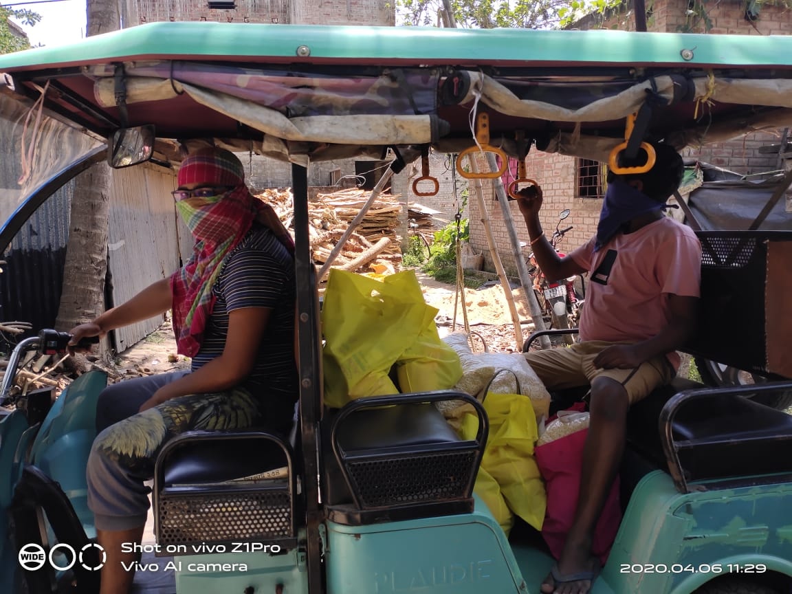 we requested our members(Bhromor) to help the needy people near them and responsibly reach the materials to them. because we can't gather all in that pandemic situation.so the two three members who eagerly want to help,are enough for us to work in this situation. And the work goes on like this slowly...but it is not possible to capture all those people so the number of picture is very less. some needy people inside the New Bazar Area are given in last two days. And also materiala are stored in various members house so that they can help the needy people around them.Everyday the materials are reached to the people by someone by walking or cycling. it's burdensome to click everymoment in this situation to prove. so very little pictures are posted here. Luckily yesterday we got a Totorikswa, so we are able to distribute many people..but the situation will be worse. so there are some changes in Rationing system.Those families who are far are given more than the families who are nearer and given next time. By this process we can be able to give the necessary things in many places and the needs are also blanced.