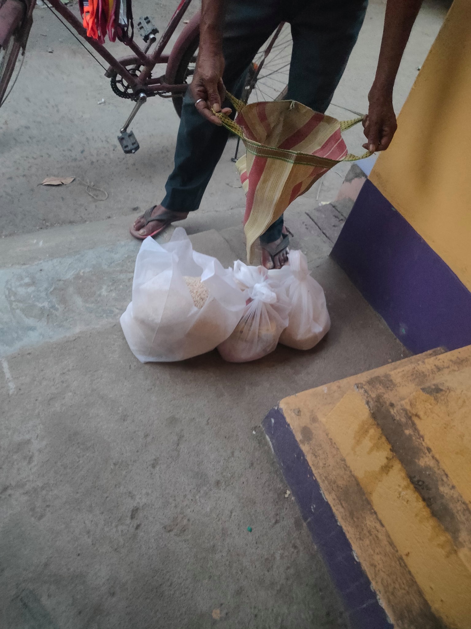 Three members of Bhromor found three family today in critical condition. Rice, pulses, soybeans, biscuits, soap, muri were delivered to them.Work on a small scale again and again ..