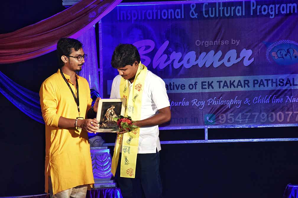May sound just an ordinary daty for you but actually it was a very special and important day for us,the Bhromorians. This special day was as important and colourful just like a new birthday of Bhromor.full of brightness and aspiration. Yes, we crossed thousands miles of difficulties,problems and. Many new challenges! Finally,the 21 August, a precious Saturday was meant for recognition and honour infront of all! With immense love for this group. We organised a very beautiful cultural evening of bhromor. Our programme was inaugurated with the holy diya lightning by a little boy, Rohit pahari along yhe group of Bhromorian. There was song and the harmonium. Duet of poem,stageed beautifully by Sumana and Anusua. As Bhromor is an unstoppable effort to work on society in all level, so we invited a few extraordinary persons as our guests to share their words and precious time with us on their evening. But the guest list was not small but it was a special ocation to stage on some bright stars among us. It was our happy moment to share our stage with our honourary guests. Mr.Malay Mukherji,Bengal’s Pride- who climed the Mount Everest peak. Dr. Babar Ali, from Bangladesh, a Unicef’s doctor and residing in Bangladeshi Rohinga camp. Mr. Debobroto karmakar, The Co-ordinator of Nadia’s child line, Mr. Suman Modak, The director of Krishnagar Jawaharlal Nehru Yuba Computer Center. Mr. Kanailal Chakrabarty, The multi talented gem. Of a person, a holder of President Award. Mr. Apurba Roy, who is known for his Miraccle Programme and a Philosopher. It is our goodluck to share our stage with so many successful and talented person.We can just take love,experience , their inspiration story from them but in return what else we can offer to them! We fill very small and tiny infront of such an intellectual crowd. There was a felicitation our cultural programme standed on the stage. The theme song of “Bhromor tader disha dibey rey”was sung on stage along with Rahul,Rupash’s guitar and Arindam’s instrumental music. Soumen and Himadri too sung beautifully on stage and their performan created a melodious aatmosphere. What are you thinking? Did we miss the cultural folks? Absolutely not! It is popularly said that dance is the hidden words of our soul and we simply cannot deny this fact. On stage the Bhromor Kids and Mouli show caused their spirited performance. ‘The Urban Folks’performed their magical music and made the evening colorful. The traditional tune of a programme was staged but still there was novelly,there was creation. As we ,the Bhromor is an Ngo and it represents social activities and social work of all level. We created a documentry film on screen to show our work,rather our journey! The documentry on screen showed our effort of ‘Ek Takar Pathsala’, ‘Ek Takar Niramoy’and a briefing of Barrackpore Units Volunteer works. Ranjit Debnath hearly a gratin and best wishes was shown too! Debangshu Das, from Muragacha units and Abhijit Das from Barrackpore Unit were feliciated and recognised too. Sudip Sarkar, the backbone of little but proactive “Bhromor ” gave a wonderful speech on the different works and thanked people who directly or indirectly worked with the organisation selflessly Bhromor and it’s journey is no doubt tough but many contributions and many big hearted people came infront to work for it. Tamal was good on stage and made the evening entertaining by his skilled anchoring.